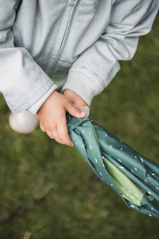 ¡Disfruta de la lluvia con nuestras sombrillas alegres de animales hechas de material reciclado! ¡Un día gris cambia instantáneo de color con estos amantes de animales alegres a tu lado! Mantente seco bajo el paraguas de tu animal favorito. Puedes elegir entre el Mr. Polar Bear, Mr. Fox, Mrs. Elephant, Mrs. Rabbit, Mr. Monkey, Mr. Crocodile & Mr. Lion. ¡Sus orejas de soplillo revolotean felices cuando saltan en los charcos y bailan bajo la lluvia! Las paraguas están hechas de poliéster 100% reciclado. El sistema deslizante para abrir y cerrar el paraguas está especialmente diseñado para las manos de los niños, de modo que los niños puedan usar el paraguas de manera segura y suave. El paraguas tiene una armadura de aluminio fuerte, de alta calidad y muy ligero. Cuando el sol vuelva a brillar, ¡puedes recoger el paraguas con la cola del animal!
