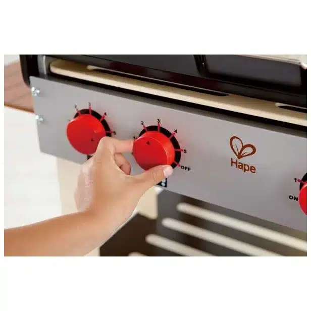 La Parrilla Gourmet de Madera de Hape es un juego de imitación ideal para que los niños desarrollen su imaginación mientras preparan deliciosas barbacoas. Fabricada en madera resistente, esta parrilla incluye detalles realistas como rejillas de doble cara, manillas de gas que se pueden encender y apagar, ruedas móviles y una práctica mesa auxiliar plegable.