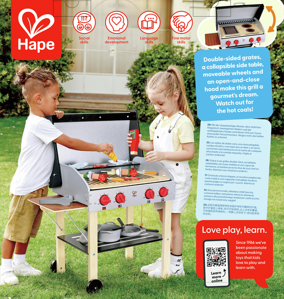 Parrilla Gourmet de Madera – Juego de cocina y barbacoa infantil – Hape – Juego simbólico creativo desde 3 años