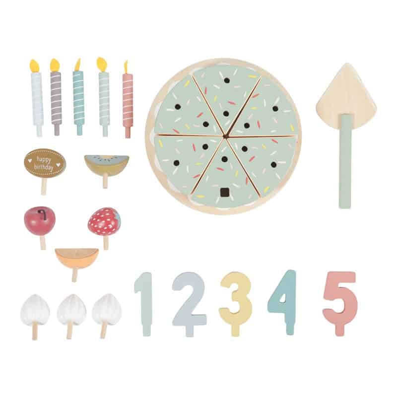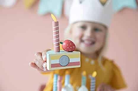 Con el Pastel de Cumpleaños XL de 26 piezas los niños disfrutarán recreando su fiesta de cumpleaños. Fabricado en madera, las porciones van unidas con velcro para poder partir sin problemas la tarta las veces necesarias. Decora este maravilloso pastel con frutas y nata y compártelo con tus invitados. El juego incluye 6 porciones de pastel listas para cortar, velas extraíbles y coberturas, un plato y una pala para servir. Incluye además los números ¡Te deseamos un feliz cumpleaños!