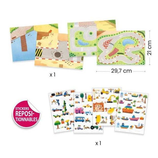 Pegatinas reposicionables Vehículos – Set creativo infantil – Djeco – Juego artístico desde 3 años