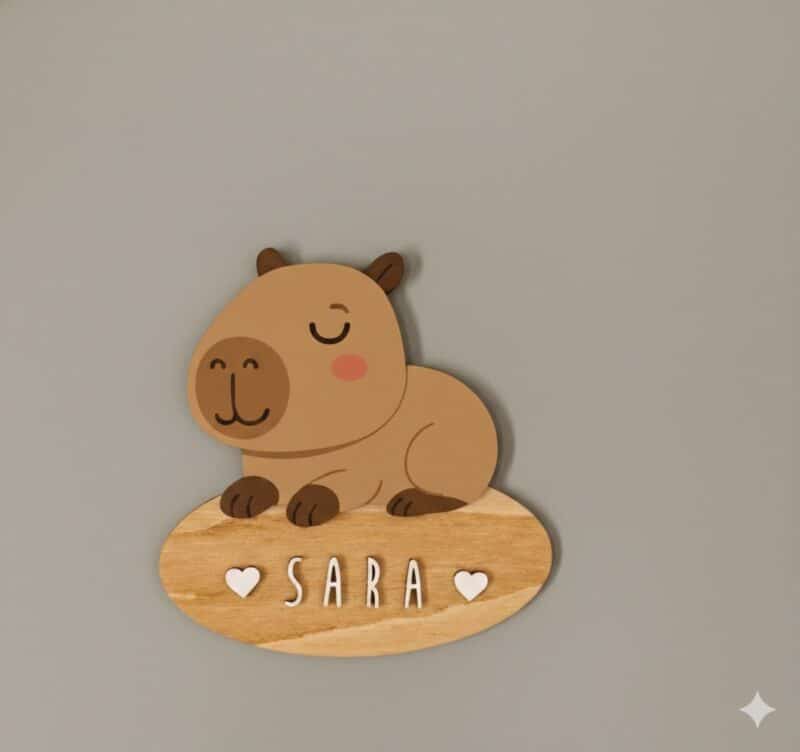 Haz tu pedido hoy y añade un toque único y personalizado con la Placa Decorativa Personalizada Capibara de Vintiun.