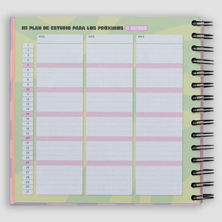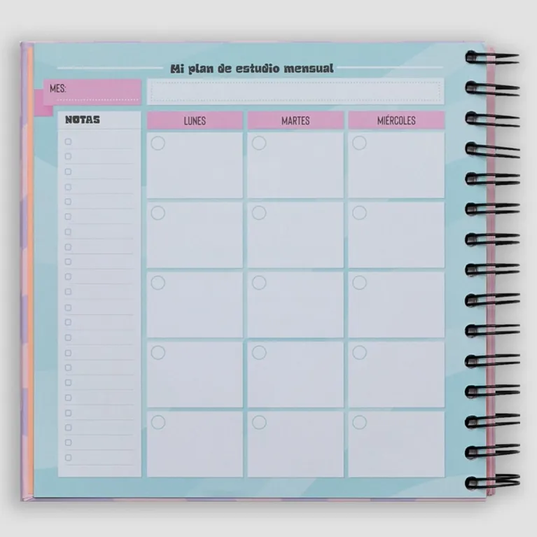 Planificador pensado y diseñado para que los estudiantes saquen el máximo rendimiento posible. Contiene consejos, frases motivadoras, esquemas para repartirse el tiempo, horarios, listas para apuntar las notas…