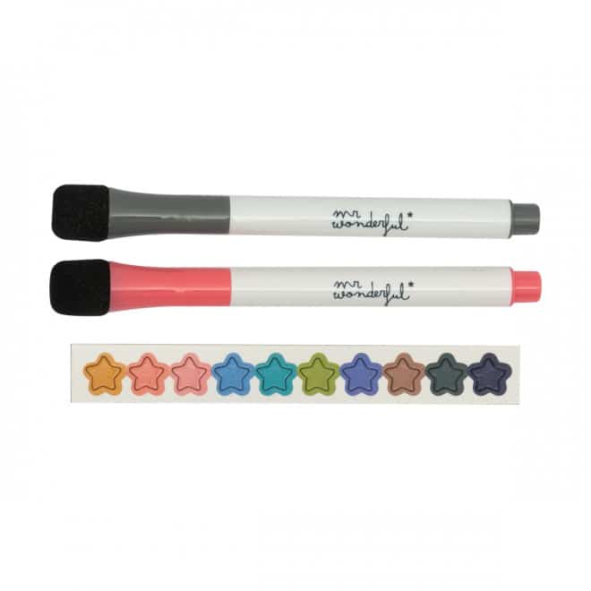 – Con superficie de pizarra blanca y dos rotuladores borrables con tinta de color negro, lo que hace que pueda ser utilizado indefinidamente