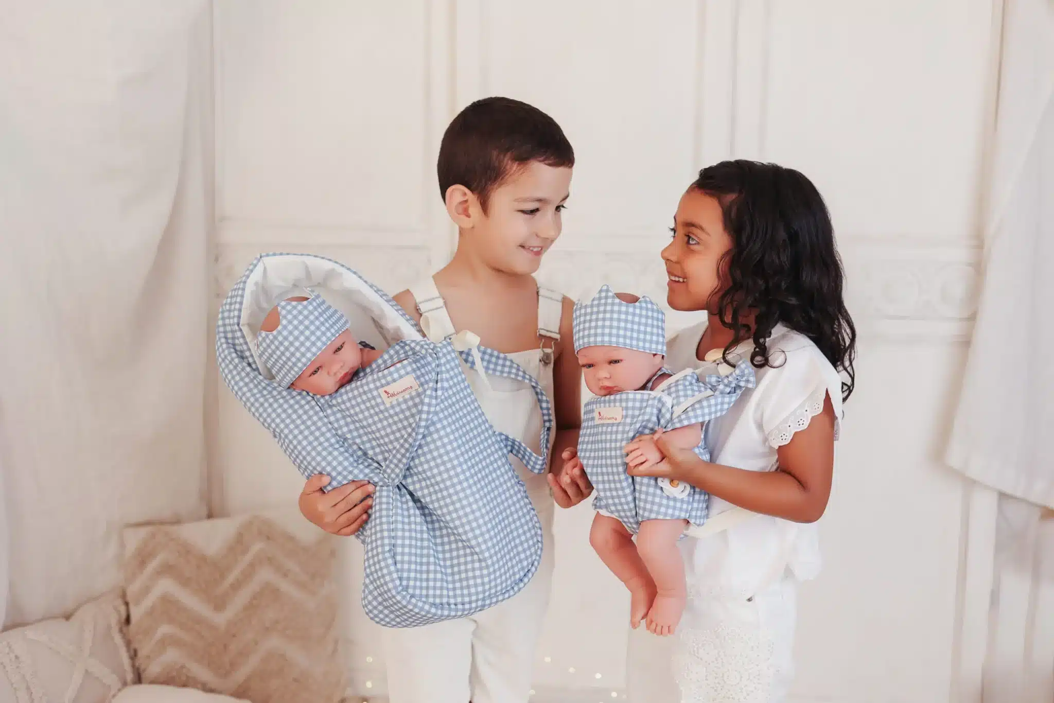 Niños y niñas que disfrutan del juego simbólico y de llevar a sus muñecos de forma cómoda y segura en paseos, juegos y aventuras diarias.