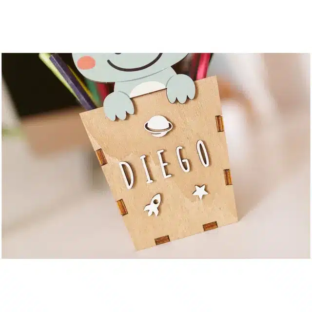 ✏️ Orden con estilo propio Un bonito portalápices de madera personalizable con letras adhesivas para que cada peque tenga su rincón de lápices con su nombre.
