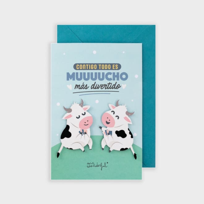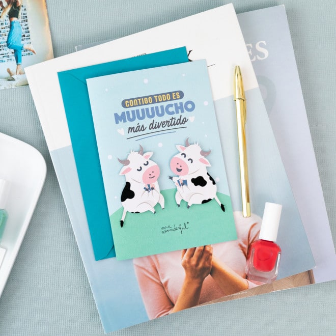 • Mensaje de la postal: Contigo todo es muuuucho más divertido