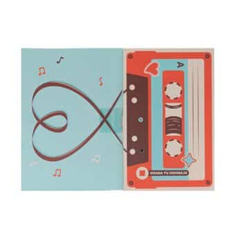 Postal con dispositivo para grabar y reproducir audio, ideal para regalar a parejas o a cualquier otra persona, ya que el mensaje en ella es lo suficientemente amplio.