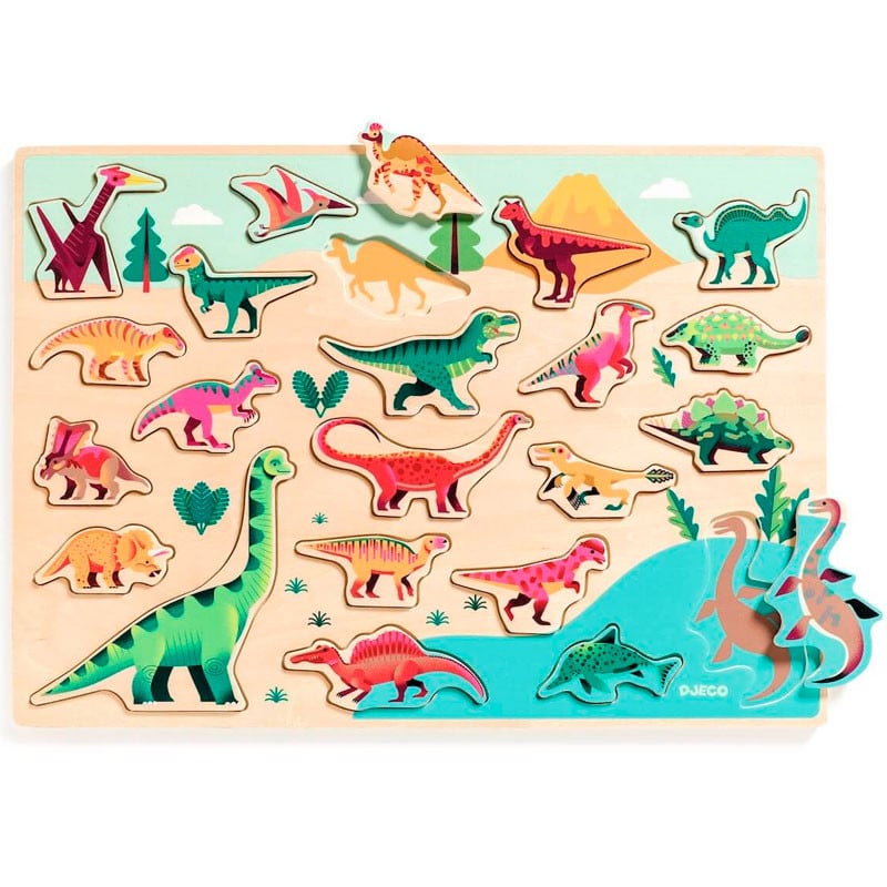 Puzzle Encajable de Madera Dinosaurios Puzzlo Dino de Djeco – Primer puzzle para pequeños paleontólogos
