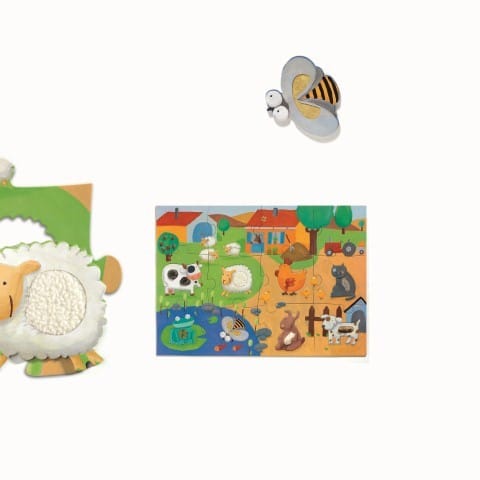 El Puzzle Gigante Tactilofarm de Djeco es un puzzle sensorial especialmente diseñado para los más pequeños. Incluye 12 piezas grandes para formar la escena de la granja y 8 piezas en forma de animales con diferentes texturas para colocar en su lugar correspondiente.