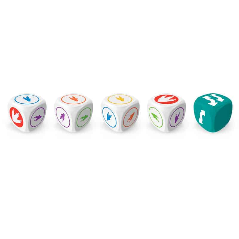 5 dados de movimiento (4 dados de «huella», 1 dado de «flechas»)