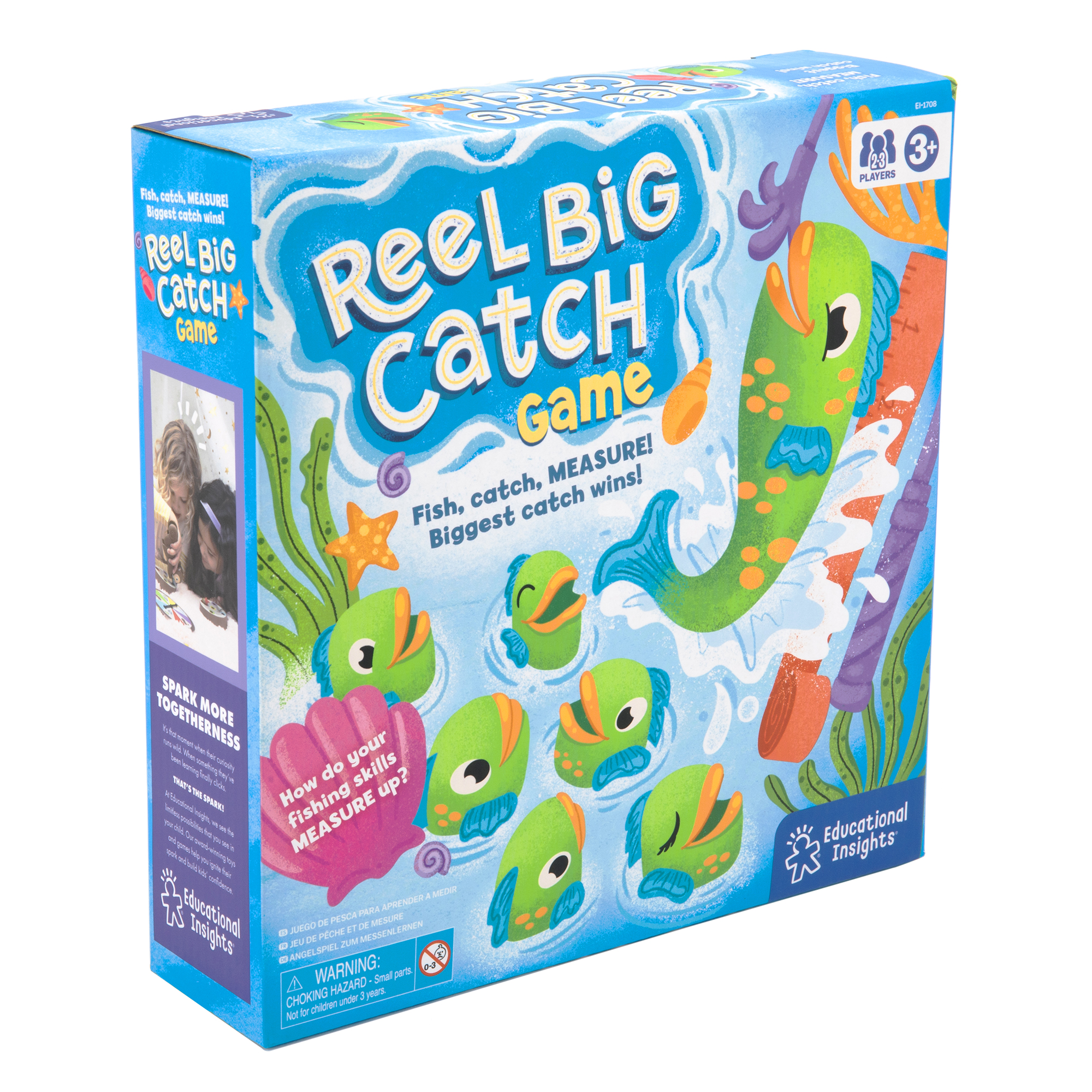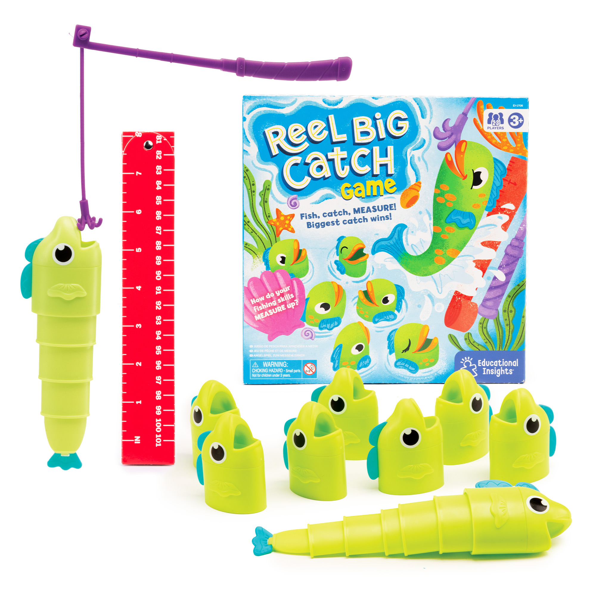 Reel Big Catch Game es un juego educativo diseñado para que los más pequeños aprendan matemáticas básicas y desarrollen la motricidad fina de forma activa y divertida. A través de un sistema de pesca, los niños capturan peces telescópicos de diferentes tamaños y los miden para descubrir quién ha pescado el más grande.