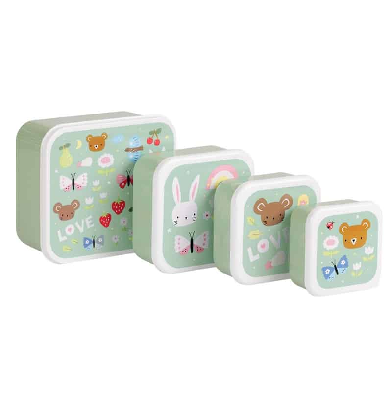 Set 4 Cajas Snack Joy – Contenedores infantiles apilables – A Little Lovely Company – Organización práctica para el cole