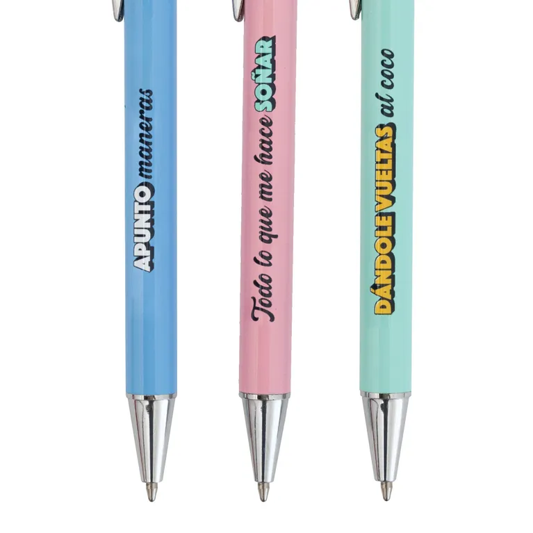 Con nuestro set de bolígrafos, tu creatividad no tendrá límites. ¡Tres mensajes, infinitas ideas!