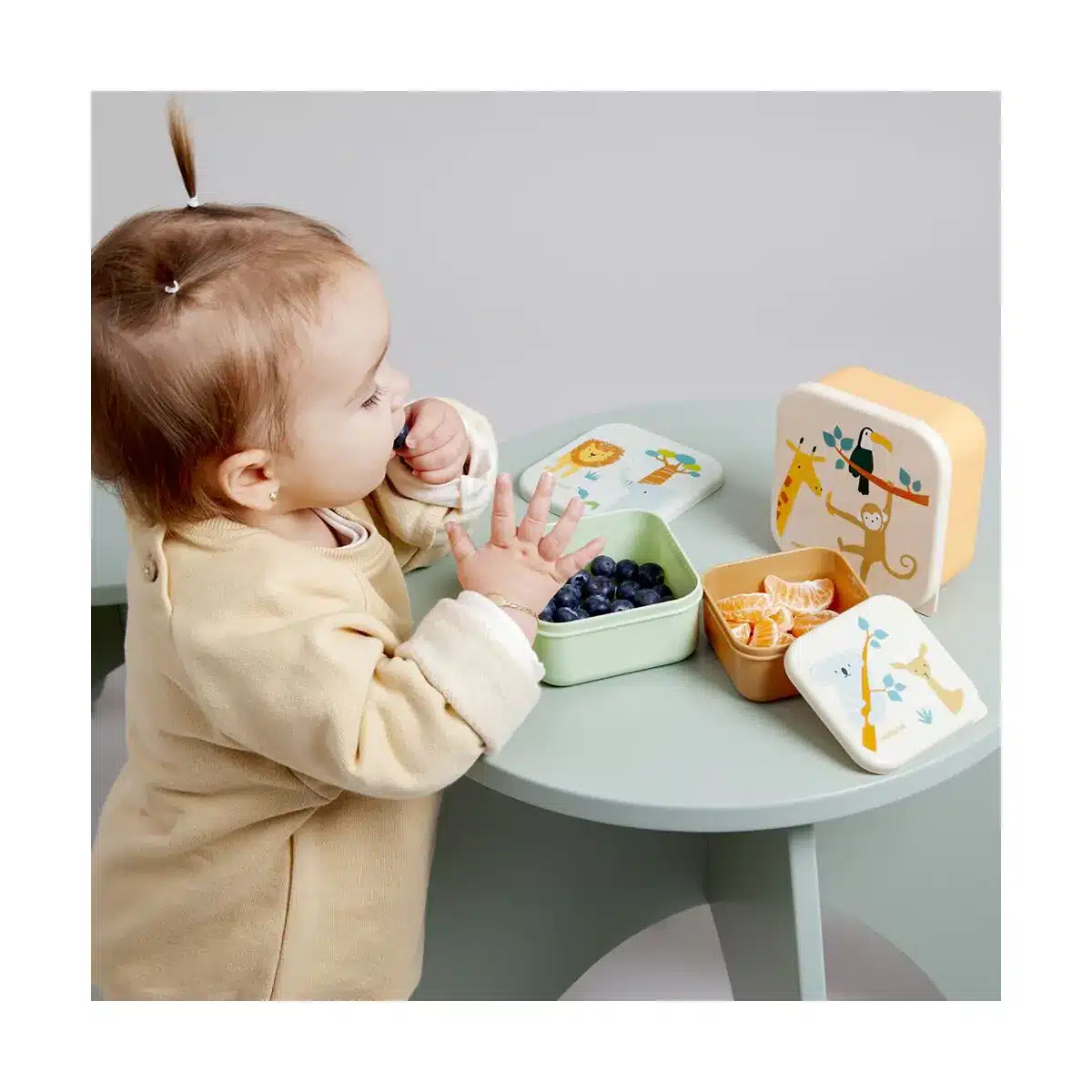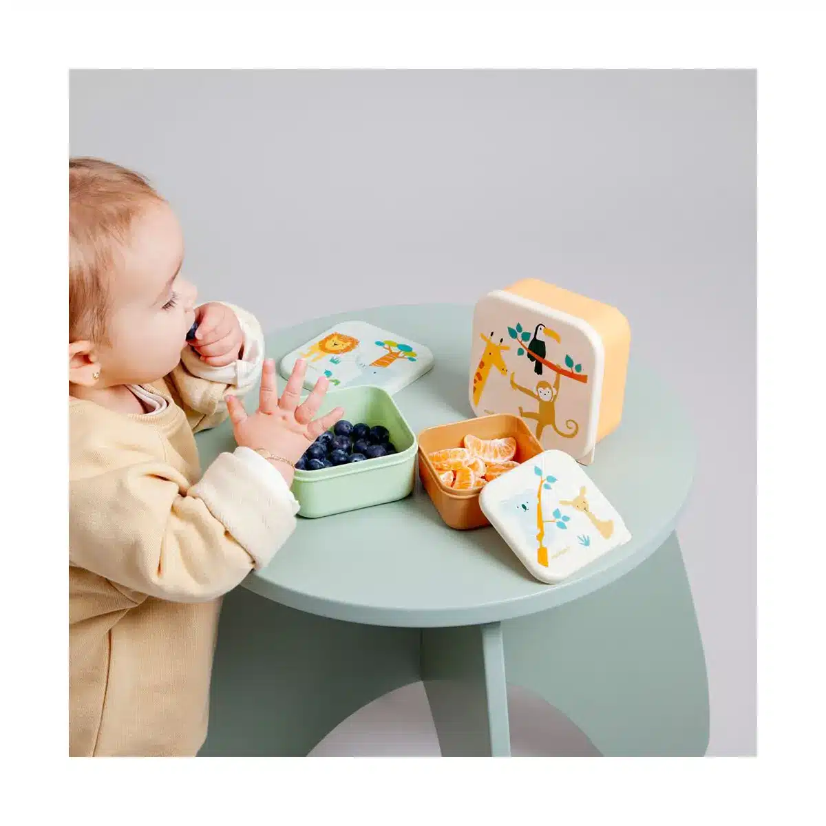 Set de 3 Cajas Snack Jungle – Apilables, Seguras y con Diseño de Animales Miniland