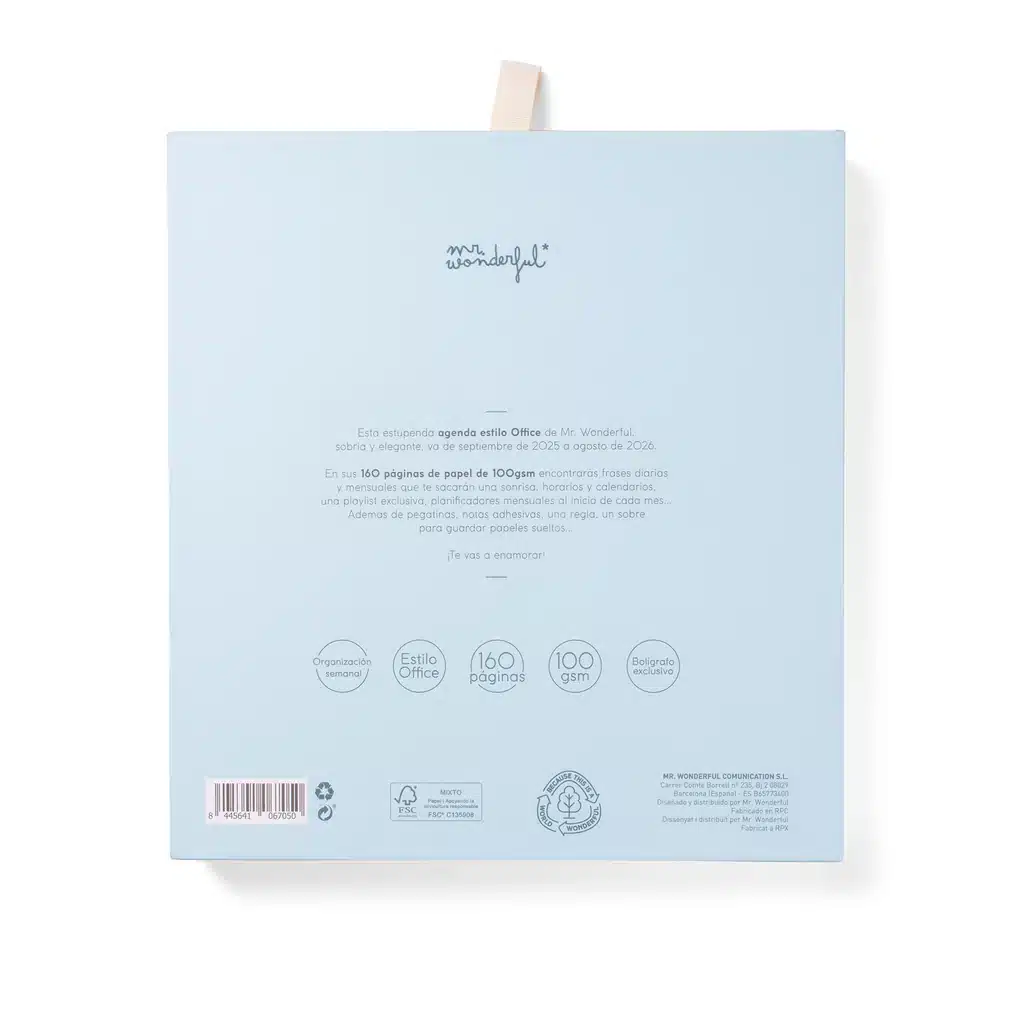 Organiza tu año académico con este elegante set de Mr. Wonderful. La agenda, con un diseño sobrio y profesional, es perfecta para el escritorio y viene acompañada de un bolígrafo metálico a juego, todo presentado en una caja premium que lo convierte en un regalo ideal.toysrus.es