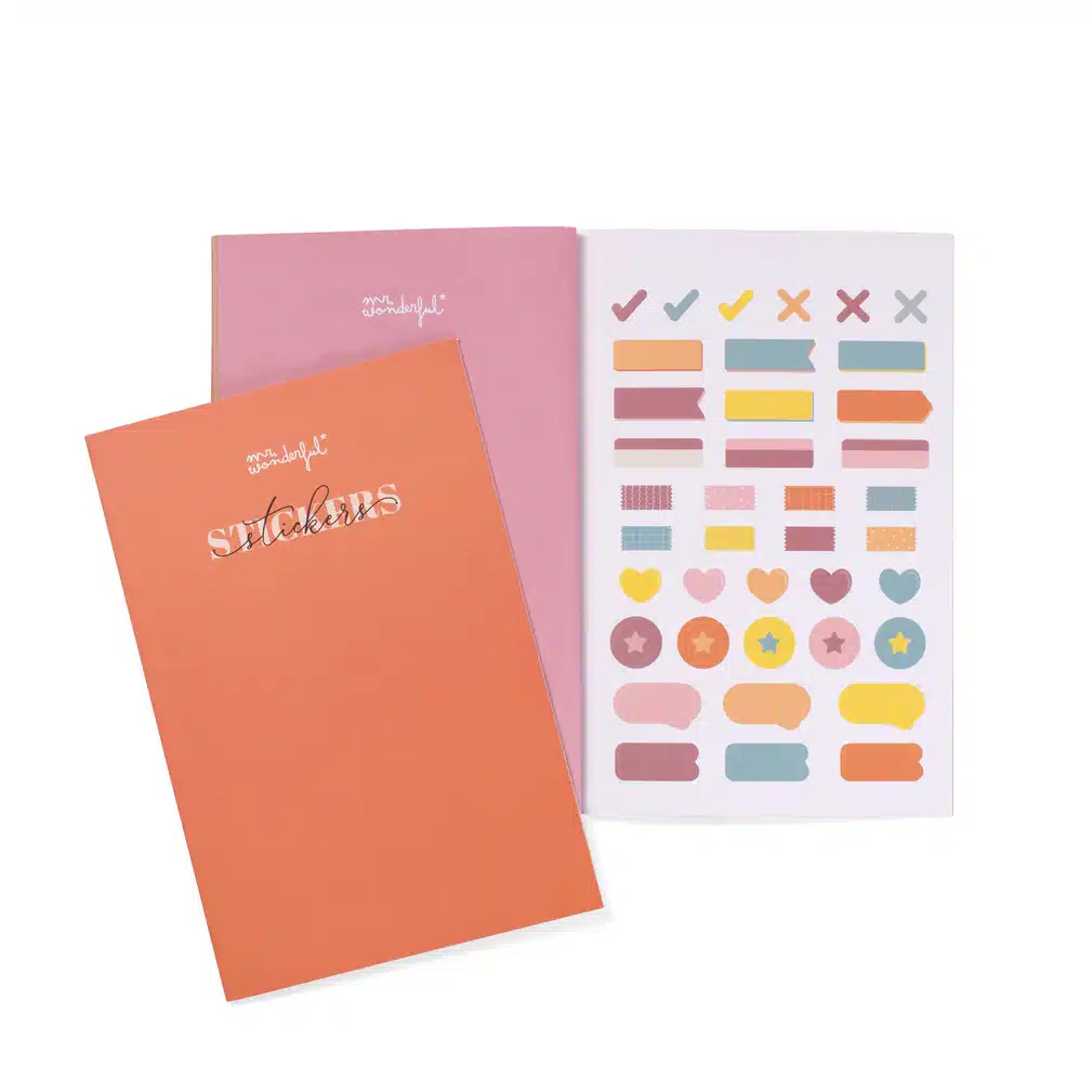• 🎨 Extras: 8 hojas de pegatinas, blocs de notas adhesivas con formas divertidas, regla de plástico interior y bolsillo interior de cartón