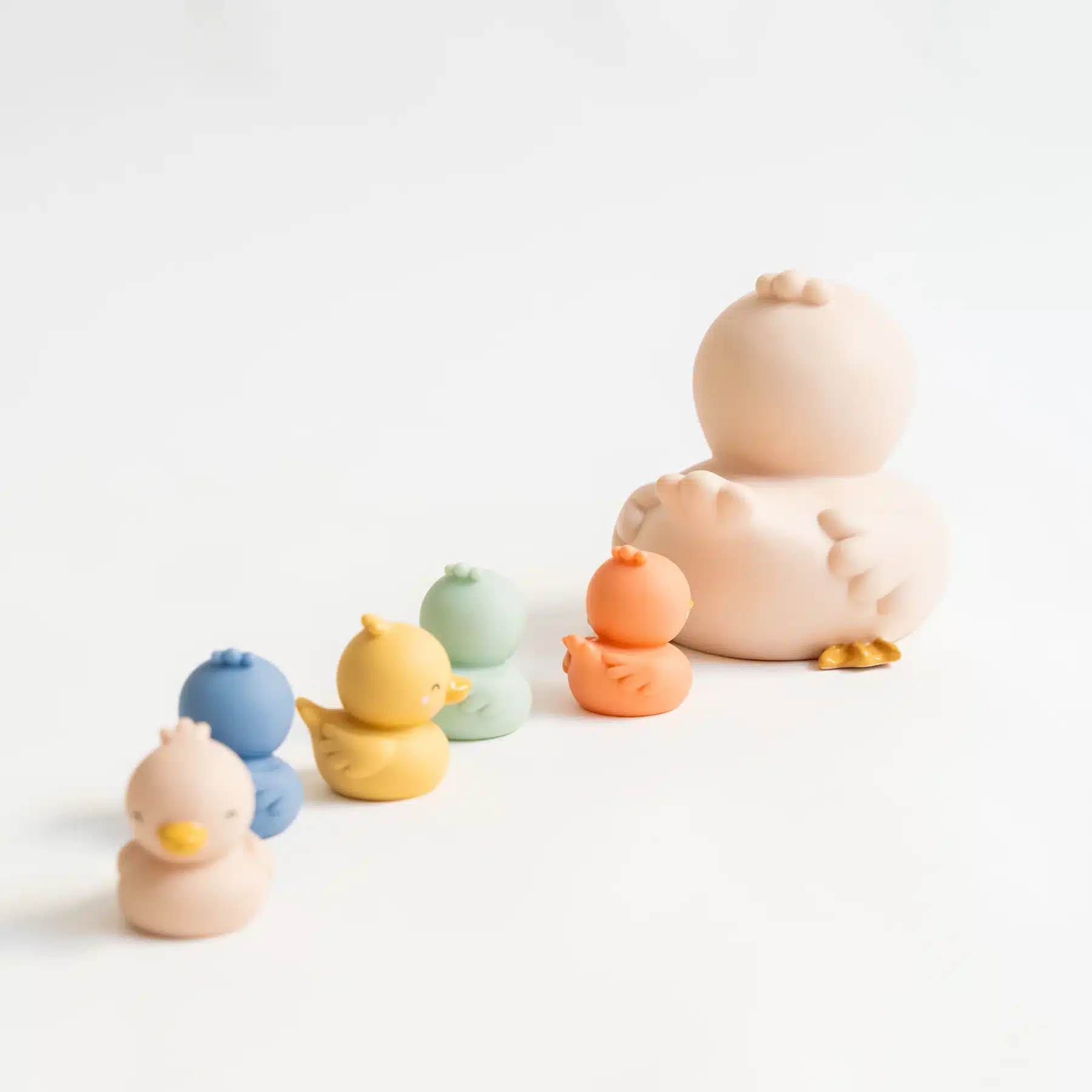 Un pack de patitos amarillos blanditos y seguros que hacen del baño un momento divertido y entrañable.