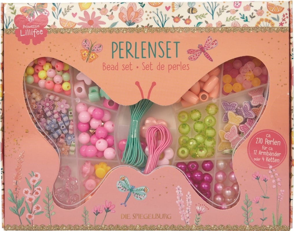 Este precioso set de abalorios de Princess Lillifee permite a los niños dar rienda suelta a su creatividad mientras diseñan pulseras y collares únicos. Presentado en una encantadora caja con forma de mariposa, este juego contiene todo lo necesario para horas de diversión creativa.