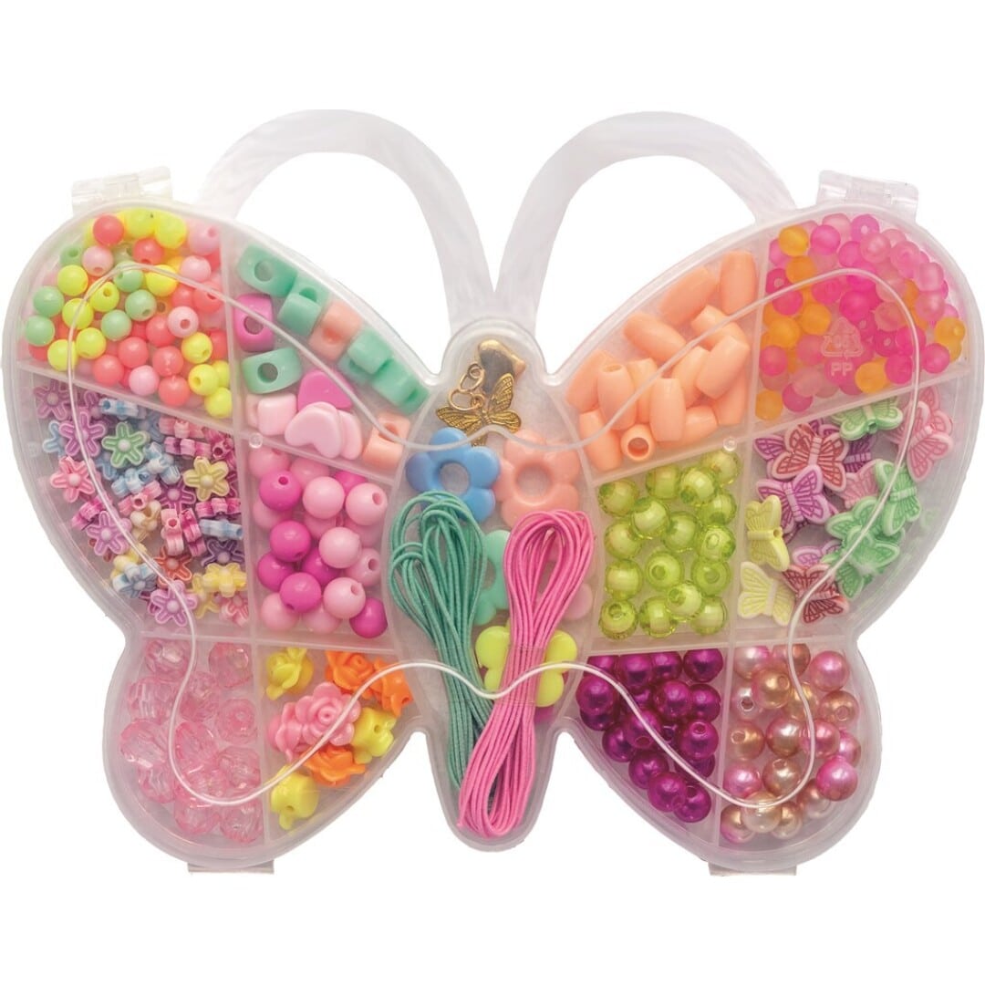 🦋 Joyas mágicas con estilo de princesa Crea pulseras y collares con este set de abalorios en caja con forma de mariposa. Incluye más de 270 piezas, colgantes y elásticos. ¡Ideal para manos pequeñas y mentes creativas!