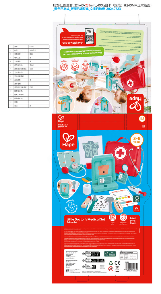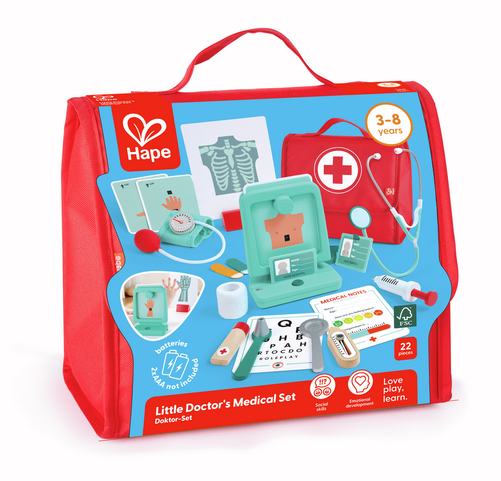 El Set Médico del Pequeño Doctor es un completo juego simbólico que permite a los niños ponerse en la piel de un médico, explorar el mundo de la salud y aprender a cuidar de los demás de una forma divertida, educativa y sin miedos.