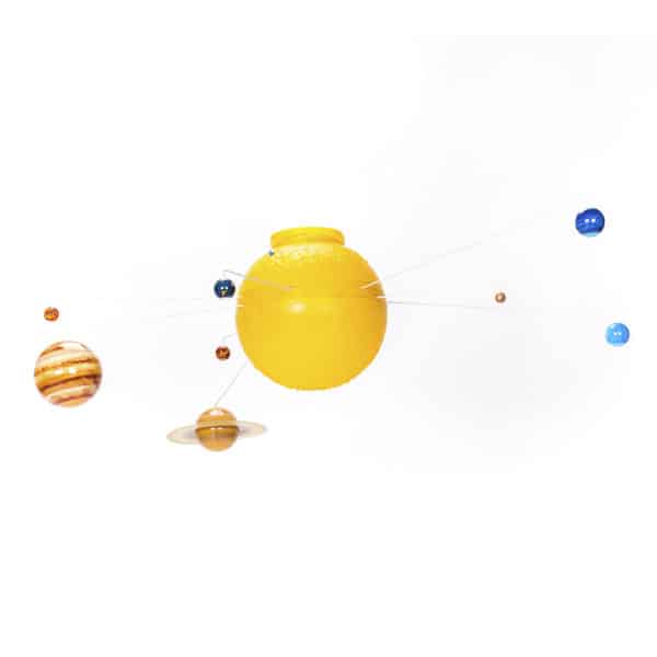 Dirigido por un control remoto, los planetas rotan según 3 orbitas diferentes alrededor del sol.