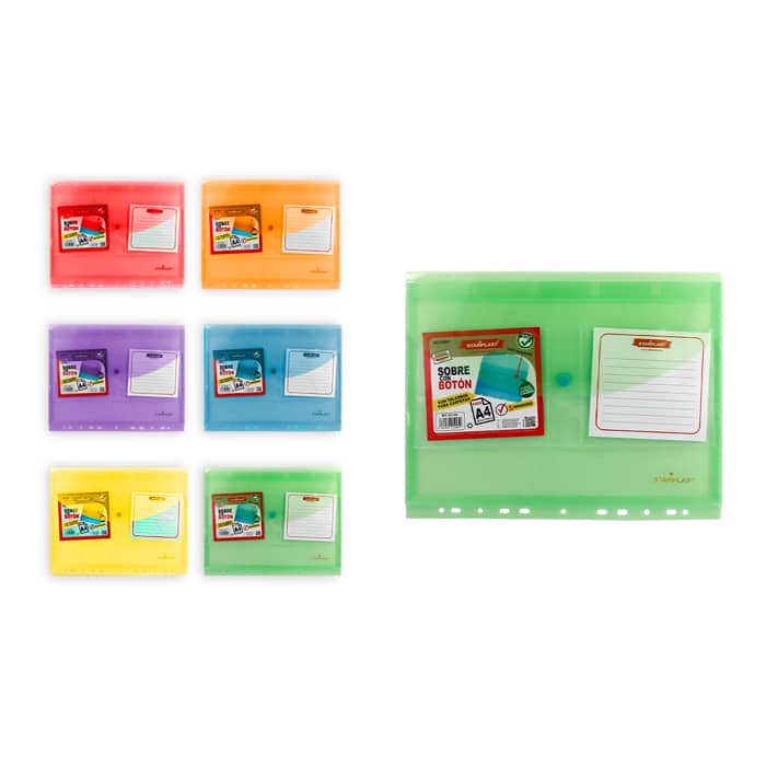 Sobre cierre botón A4 310X250 multitaladro porta CD. Colores surtidos.