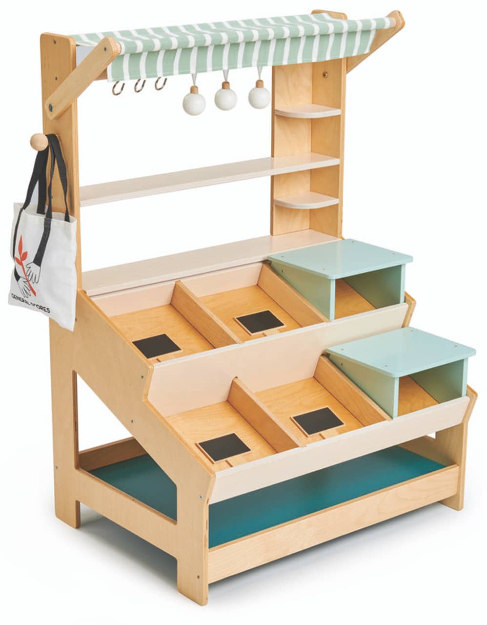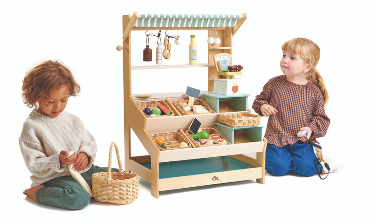 Un maravilloso elemento de juego de roles abierto y social que sin duda será la pieza perfecta en una sala de juegos. No olvides llenar el mercado con productos de madera para jugar de la gama Tender Leaf Toys.