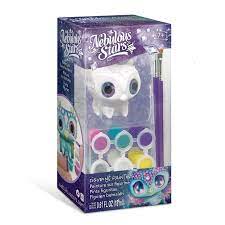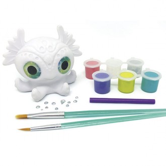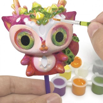 – Incluye: 1 figurita para pintar, 5 colores de pintura acrílica, barniz brillante, 2 pinceles, 1 stick de plástico abalorios e instrucciones.