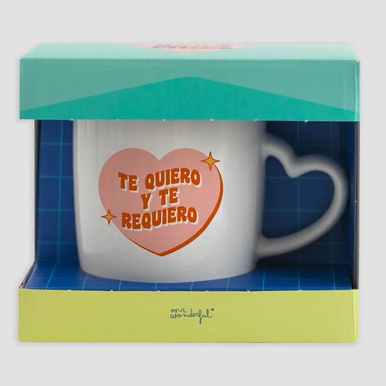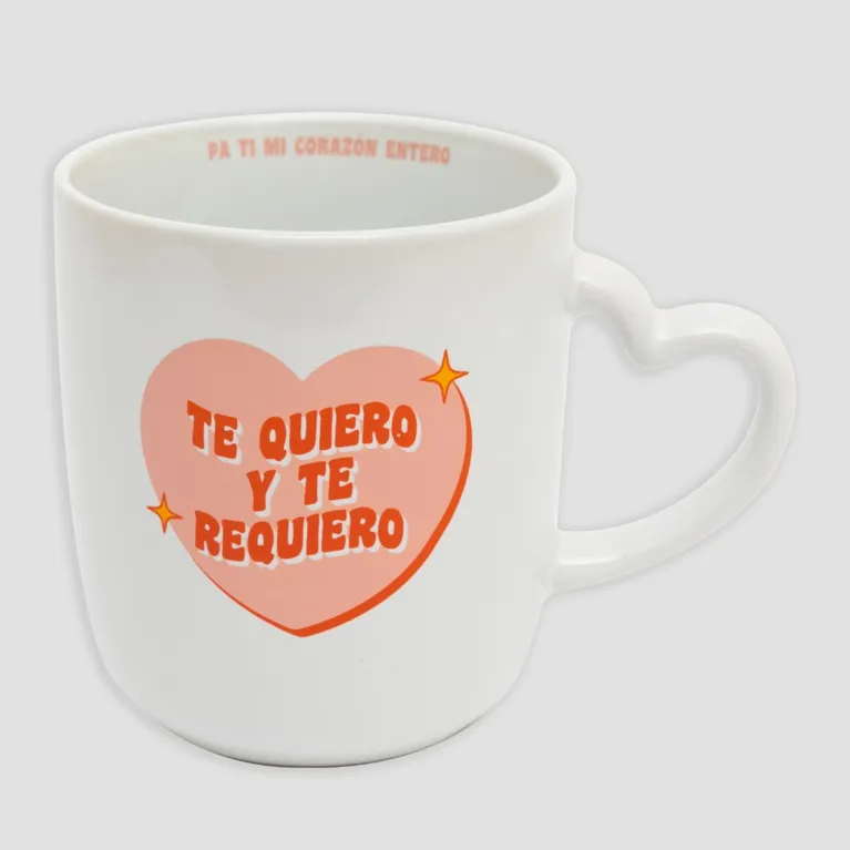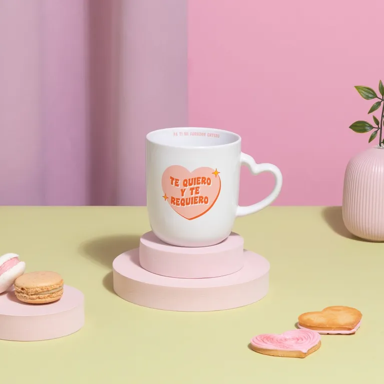 Taza de cerámica con mensaje de amor. El asa de la taza tiene forma de corazón y, además, cuenta con un mensaje en su interior, que complementa el mensaje exterior. No hay taza más ideal para regalar a esa persona tan especial, ¡o a ti mismo!