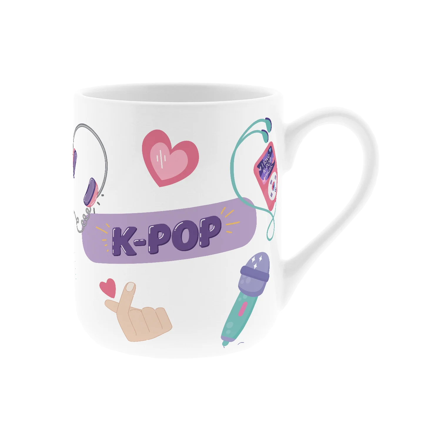 Disfruta de tu bebida favorita con una taza resistente y llena de estilo, inspirada en la estética K-Pop y pensada para el uso diario.