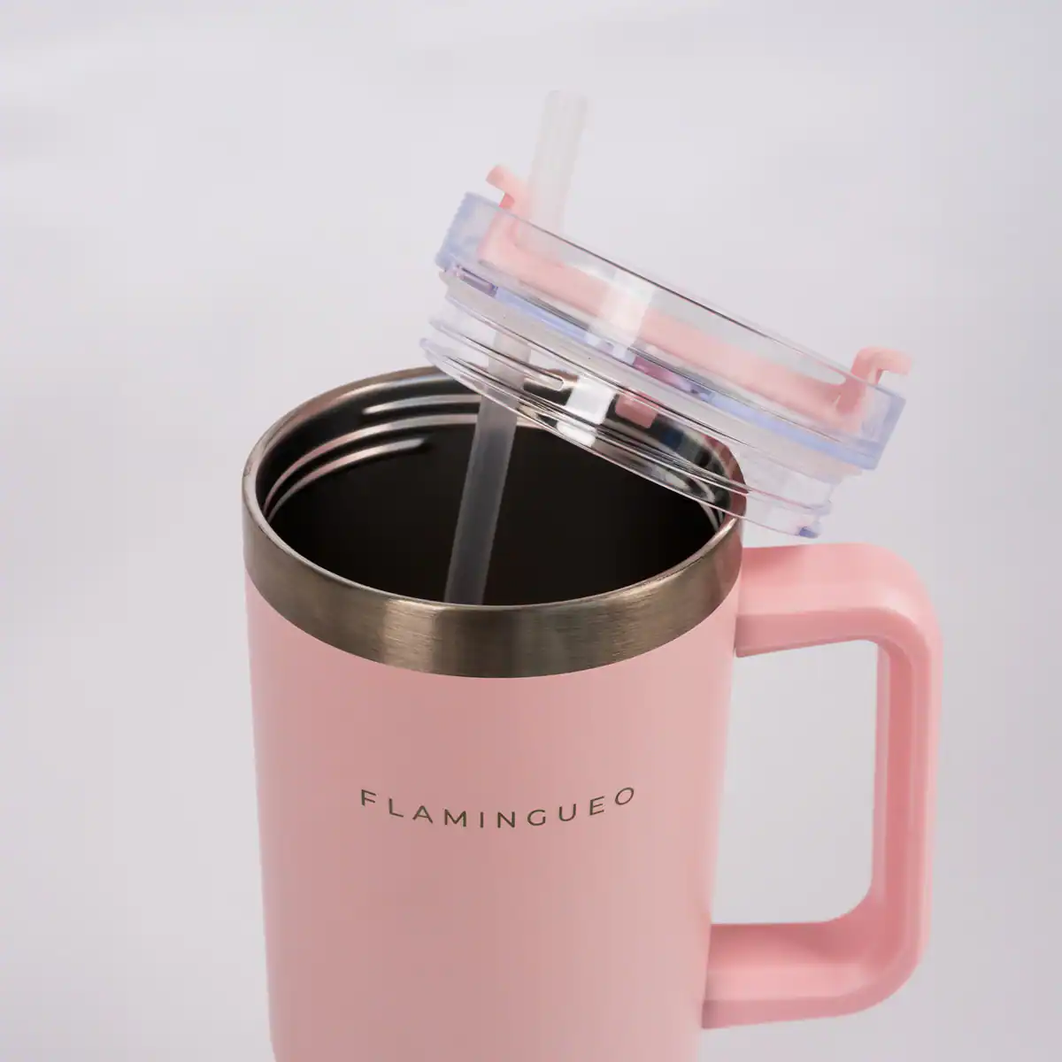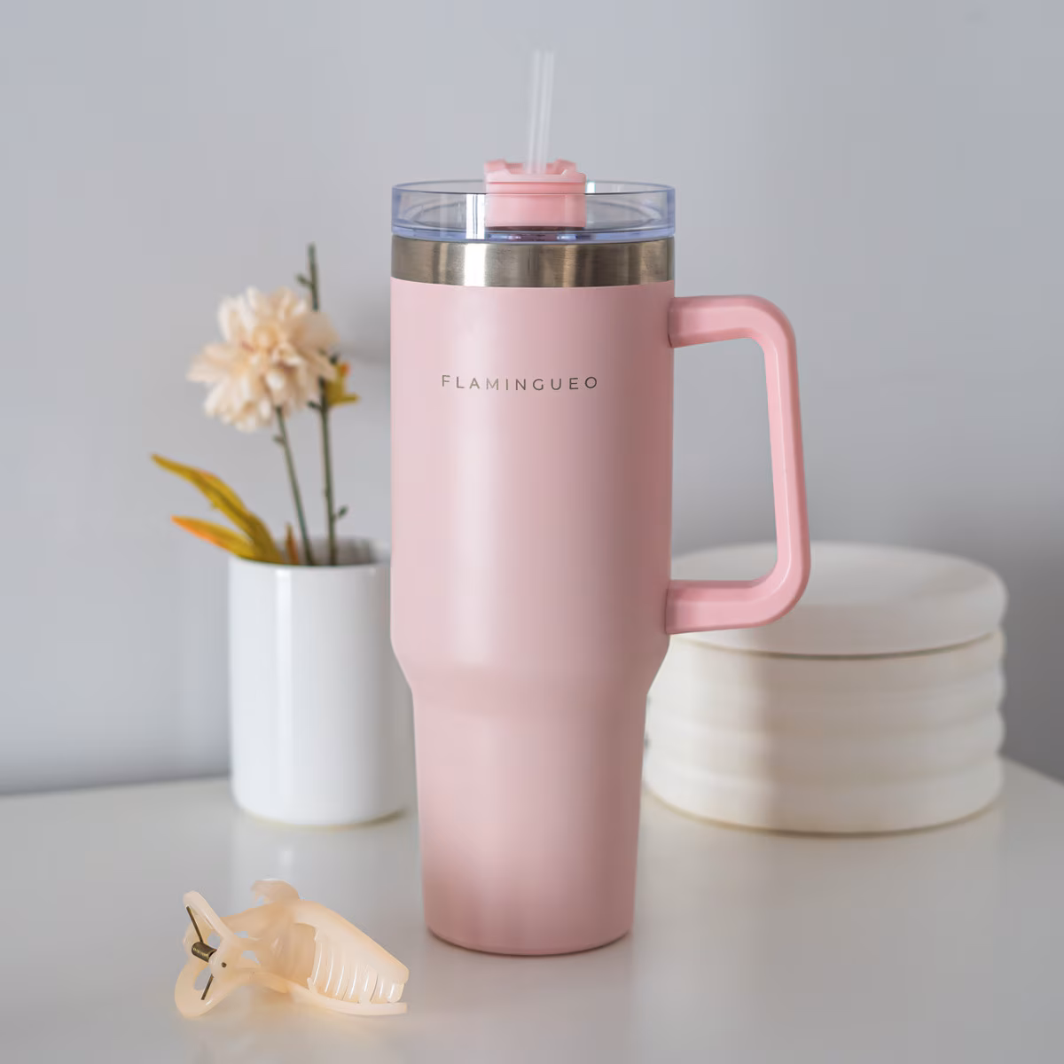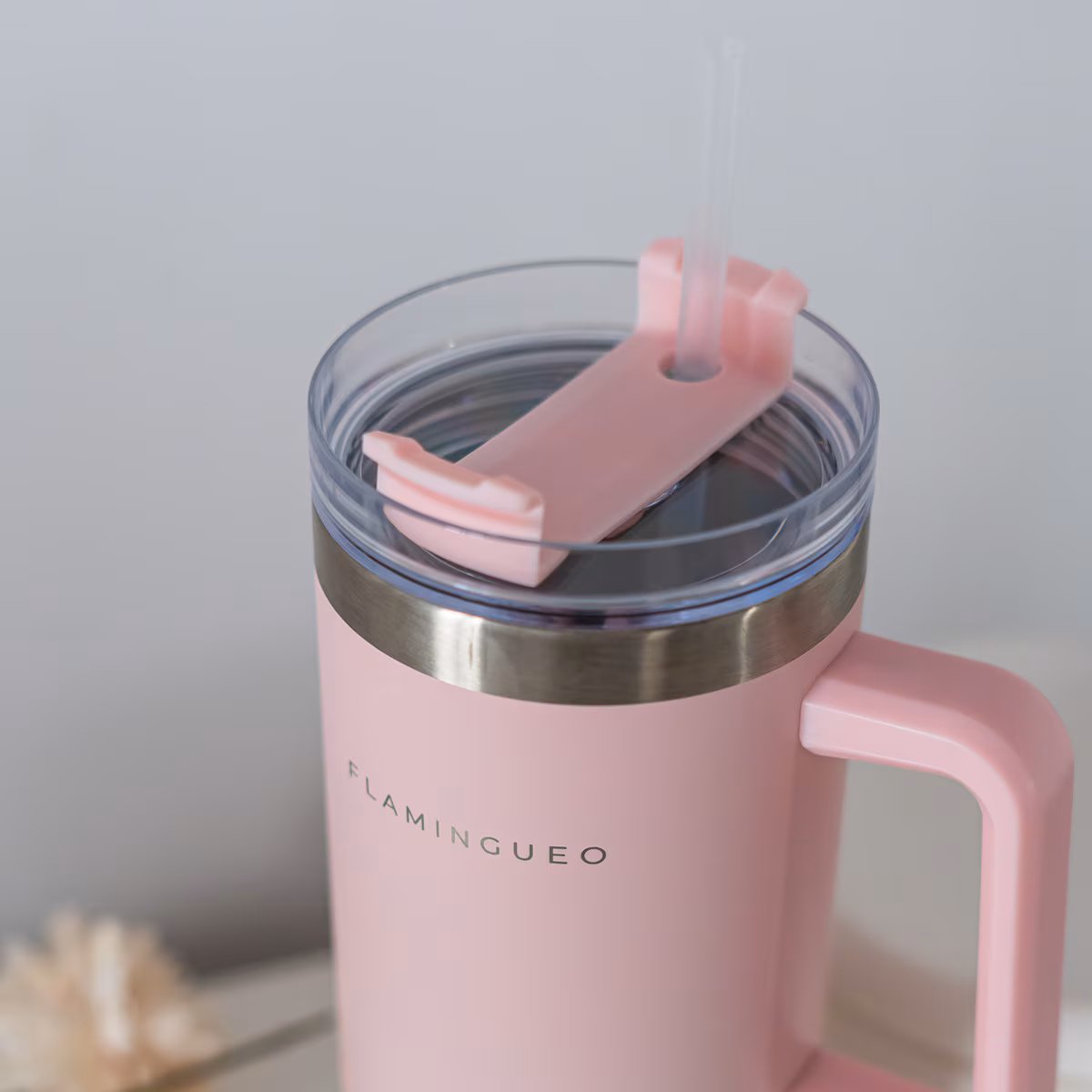 🌸 Mantén tus bebidas frías o calientes con estilo gracias al termo rosa de Flamingueo: funcional, duradero y con diseño minimalista.