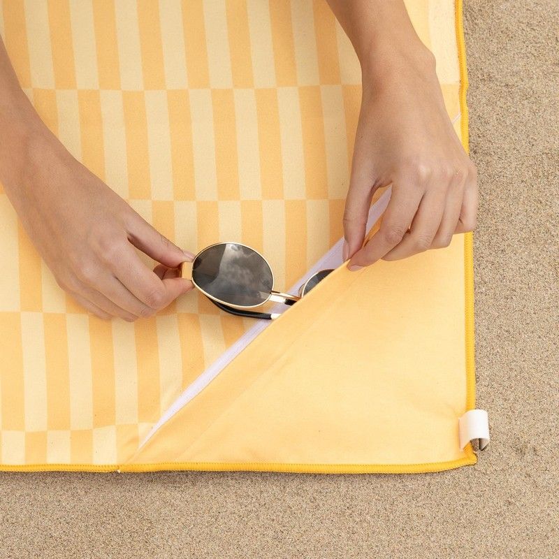 Toalla de microfibra ultraligera y de secado rápido, con diseño a rayas en color amarillo. Ideal para la playa, la piscina o tus escapadas de verano.