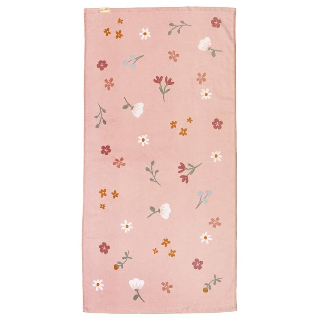 Toalla de playa de la marca Little Dutch de la colección Pequeñas flores rosas. Tamaño toalla: 60 x 120 cm, 100% algodón y 400 gsm.