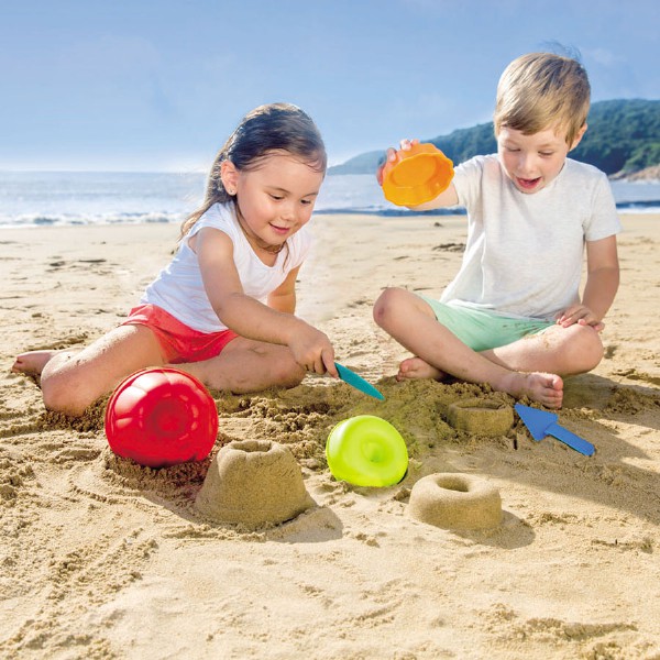 Este set contiene todos los moldes y herramientas necesarios para que el peque pueda hacer deliciosos pasteles de arena y cortarlos en trocitos para poder compartirlos. ¡Ideal para que los pequeños pasteleros disfruten del día de playa!