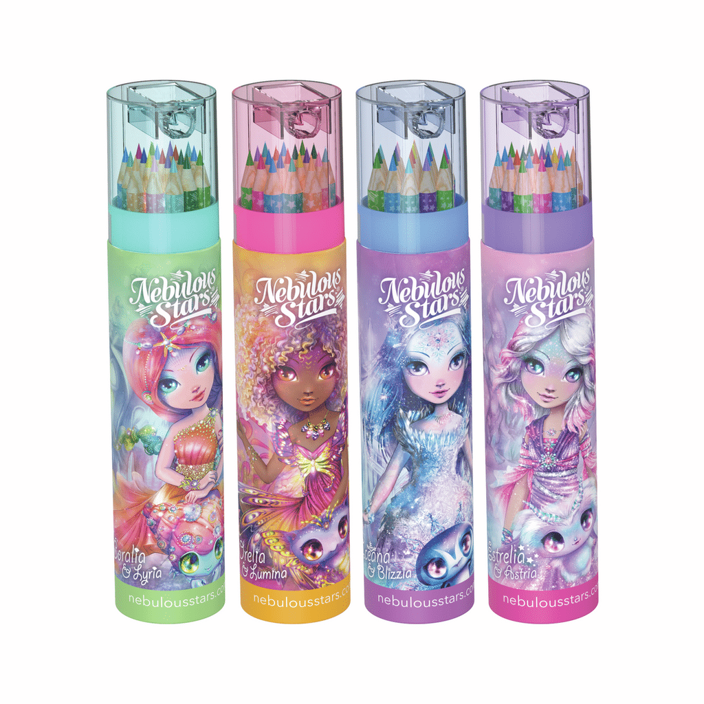• Un tubo de lápiz con 4 diseños diferentes de Nebulous Stars para coleccionar y mantener ordenados los materiales de arte.