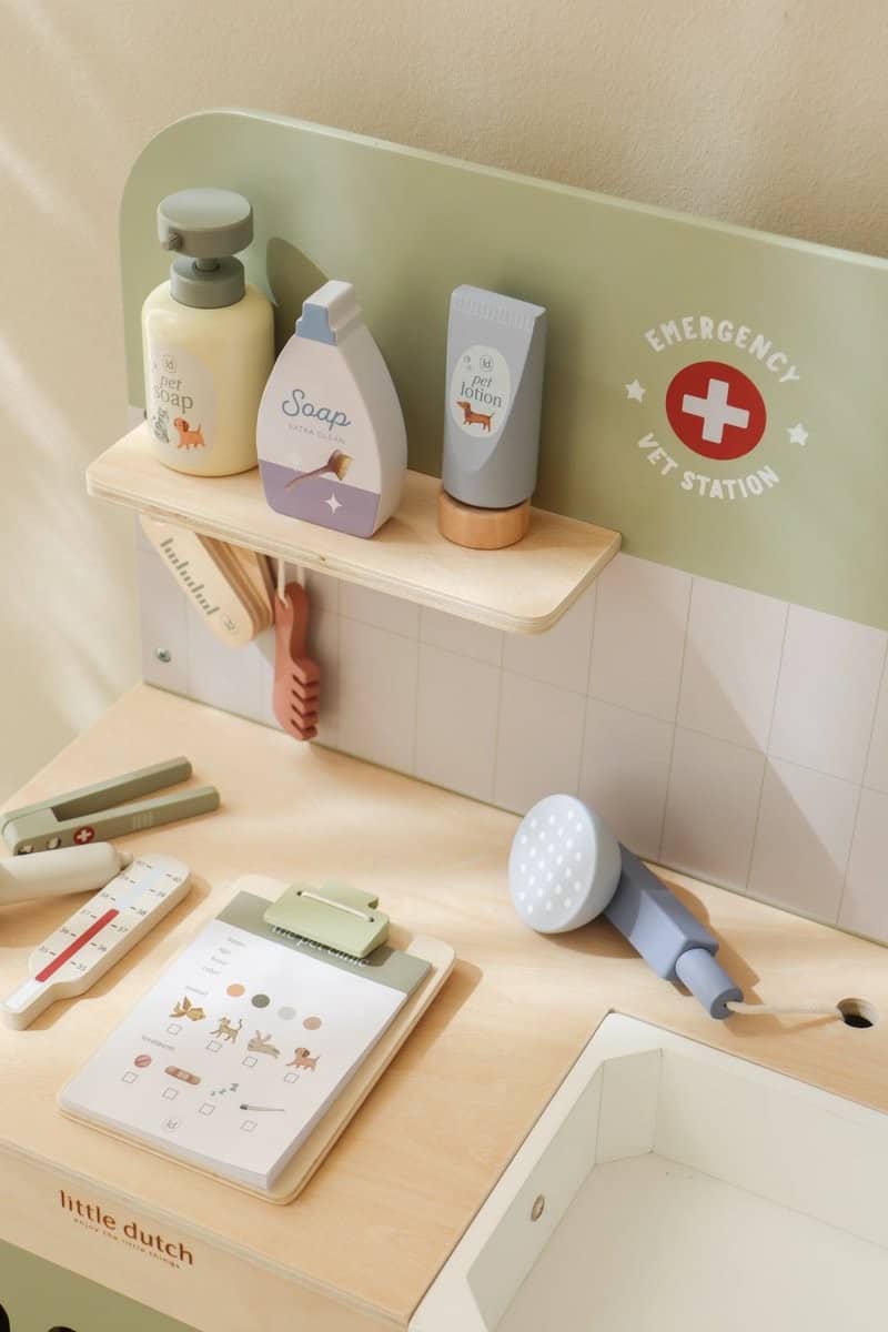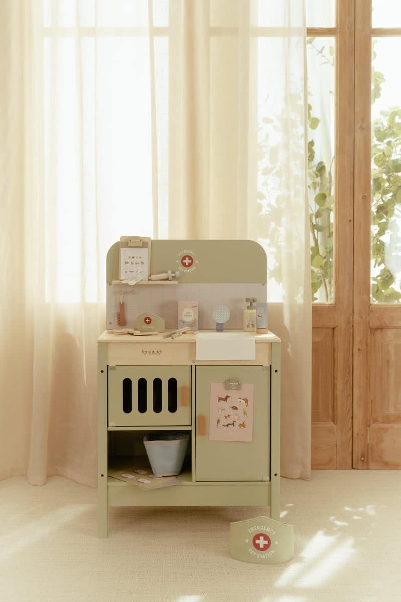 El Veterinario FSC de Little Dutch es una completa clínica veterinaria de madera que permite a los niños sumergirse en el juego simbólico cuidando de peluches y mascotas de juguete. Con múltiples accesorios realistas y un diseño lleno de detalles, este set fomenta la empatía, la imaginación y el aprendizaje a través del juego.