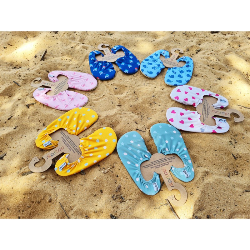 Estas preciosas y originales Zapatillas Calcetines antideslizantes pertenecen a la marca SlipStop®, fabricante de complementos infantiles para poder disfrutar de manera segura los días de playa y piscina: Originales, innovadores y coloridos gracias a los preciosos y divertidos diseños que tienen dibujados que darán un toque alegre. Puedes encontrar el resto de modelos de zapatillas antideslizantes para la playa o piscina así como el resto de productos de la marca SlipStop®